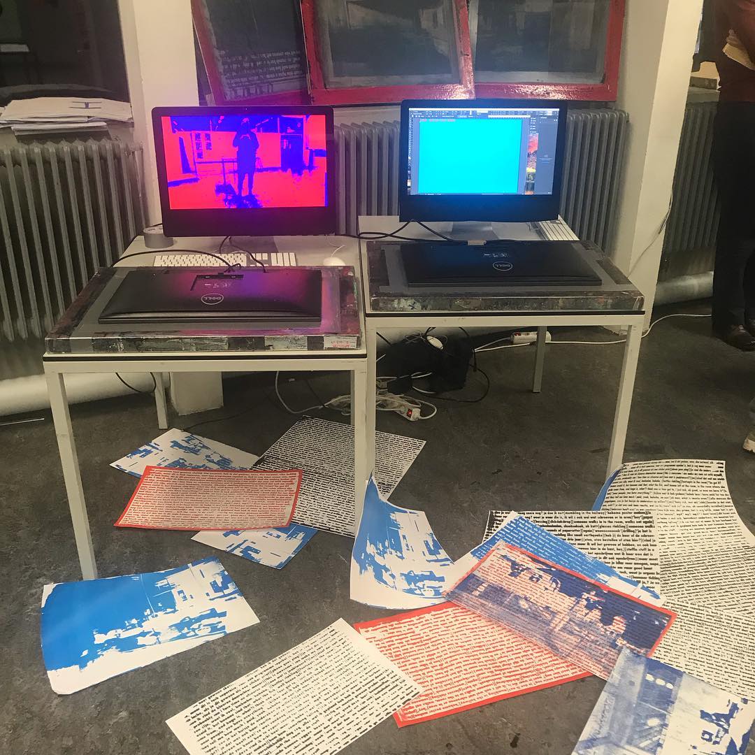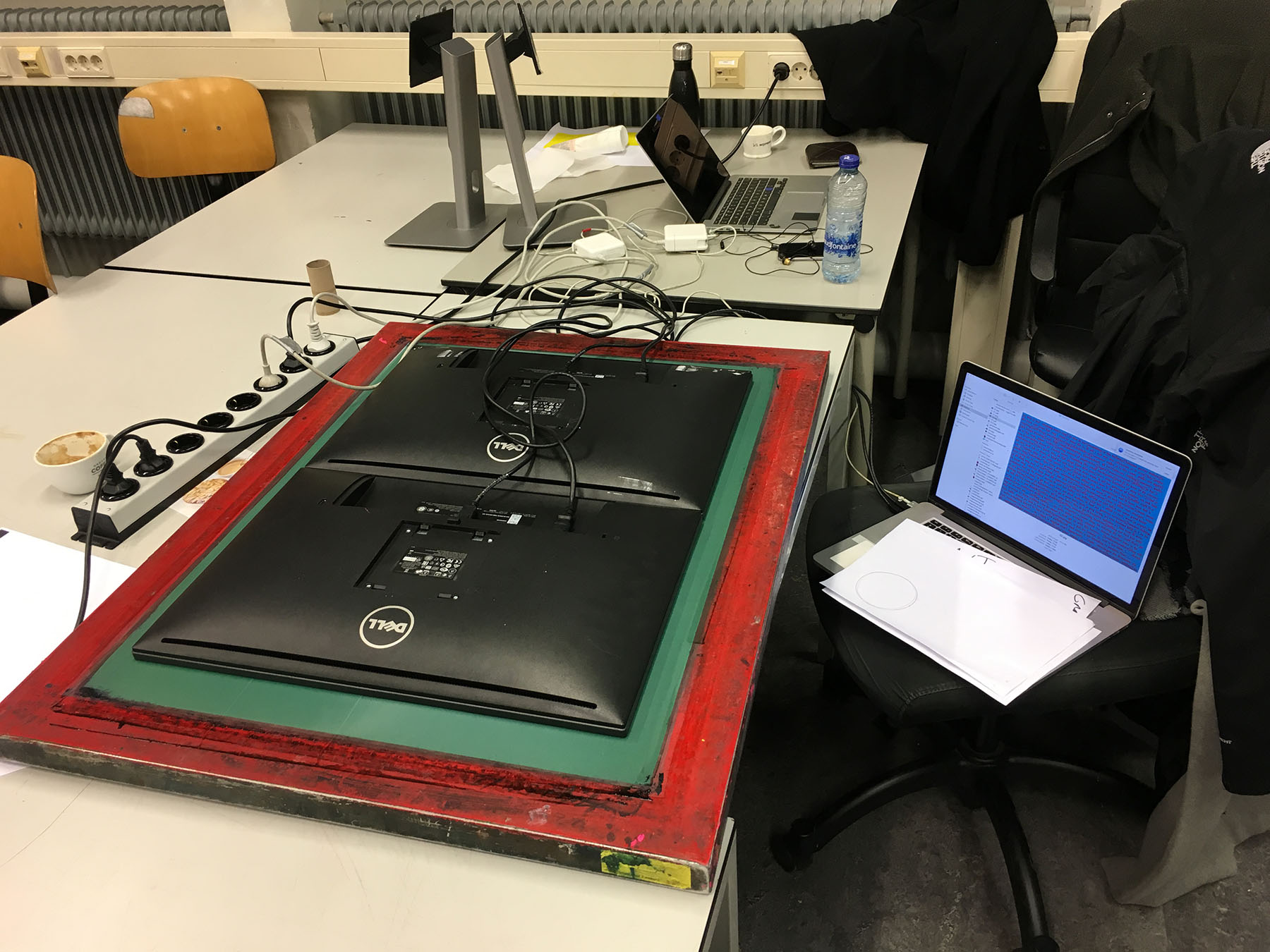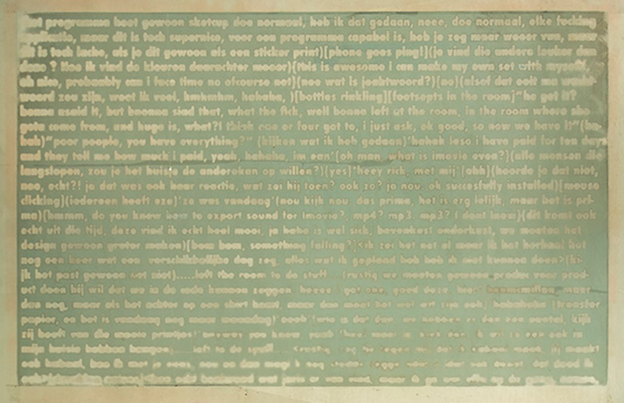 Zeefdrukken van klaslokalen en de daar gevoerde conversaties.
